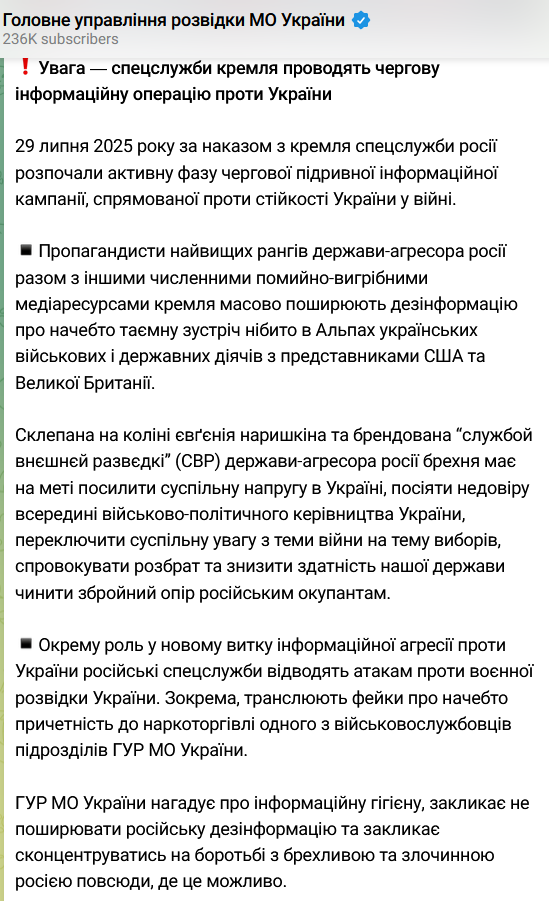По заявлению разведки, "спецслужбы России начали активную фазу очередной подрывной информационной кампании, направленной против стойкости Украины в войне".