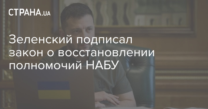 Владимир Зеленский подписал принятый сегодня Верховной Радой закон о восстановлении полномочий Национального антикоррупционного бюро Украины (НАБУ) и Специализированной антикоррупционной прокуратуры (САП).