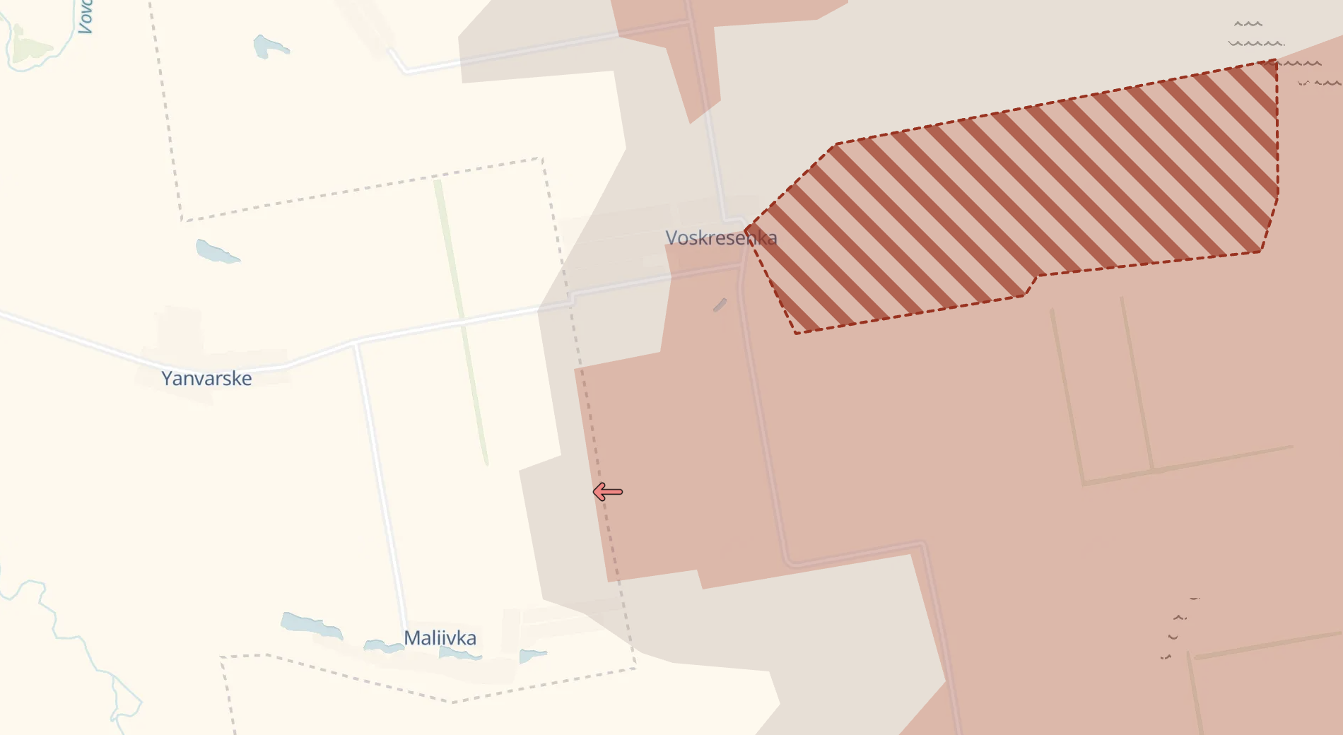 Армия РФ продвинулась у границы Днепропетровской области в районе Воскресенки, сообщает DeepState.