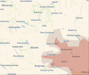 Также российские войска продвинулись к северу от Родинского, где захвачено село Затишок.