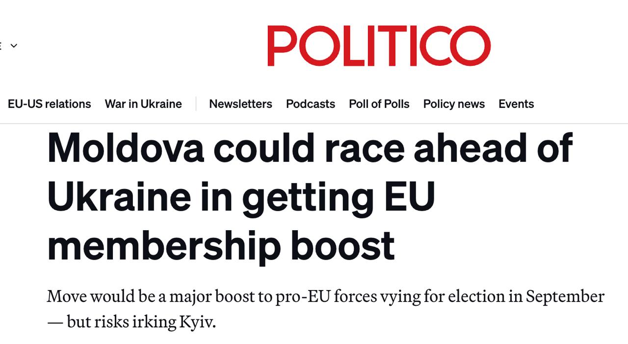 "Такой шаг даст мощный электоральный импульс президенту Майе Санду, чья партия ведет предвыборную кампанию на проевропейской платформе и сталкивается с решительными усилиями России склонить голоса избирателей в пользу Москвы. Однако предоставление возможности Молдове двигаться вперед и задержка с Украиной чреваты риском разозлить Киев, чья заявка на членство в ЕС продвигалась параллельно с Молдовой с тех пор, как обе страны получили первоначальный зеленый свет от Европейского совета в 2023 году", - комментирует Politico.