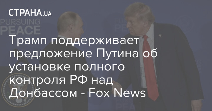 Президент США Дональд Трамп поддерживает предложение Владимира Путина о том, чтобы РФ установила полный контроль над Донбассом. При этом он согласен на заморозку линии фронта в других местах для заключения соглашения с Украиной.
