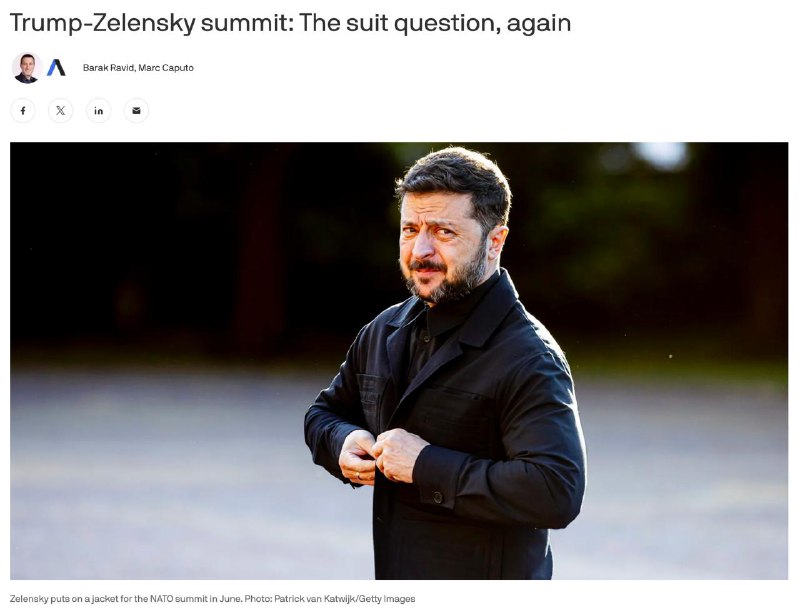 Один из советников Трампа, "отчасти в шутку", сказал, что "это был бы хороший знак для мира", если бы Зеленский надел костюм, но добавил: "Мы не ожидаем, что он это сделает".