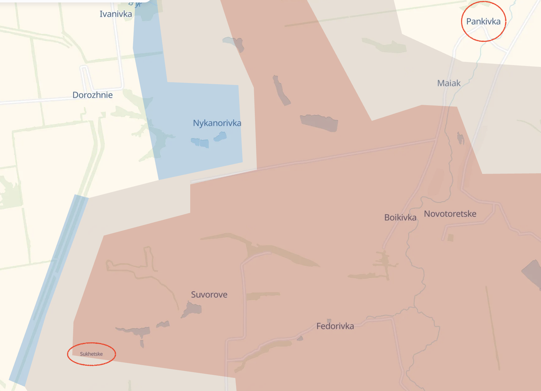 Также российские власти заявляют о захвате сел Сухецкое и Панковка в районе российского вклинения в сторону Доброполья.