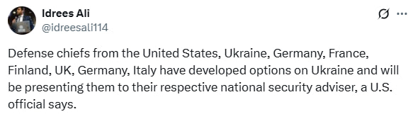 Министры обороны США, Украины, Германии, Франции, Финляндии, Великобритании и Италии разработали варианты гарантий безопасности для Украины.