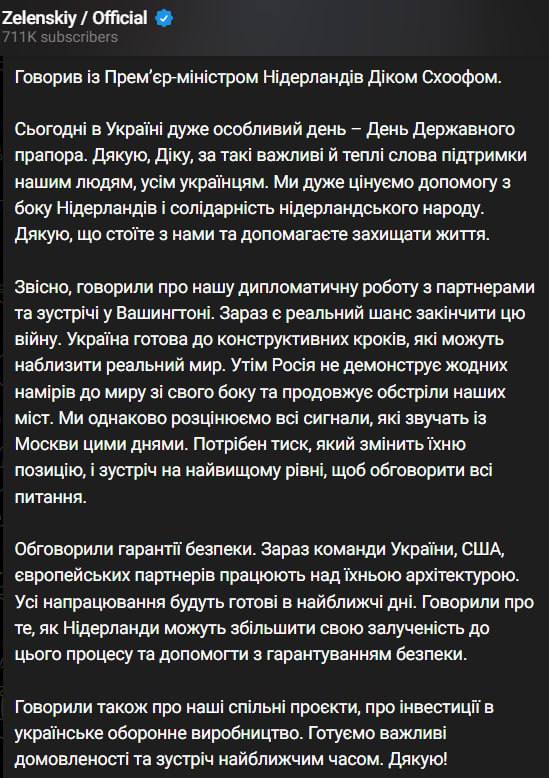 14:26 Уже в ближайшие дни будут готовы наработки "архитектуры гарантий безопасности для Украины", заявил Зеленский