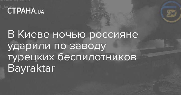 В Киеве сегодня ночью был четвертый удар по заводу турецких беспилотников Bayraktar за последние полгода, было зафиксировано два прилёта.