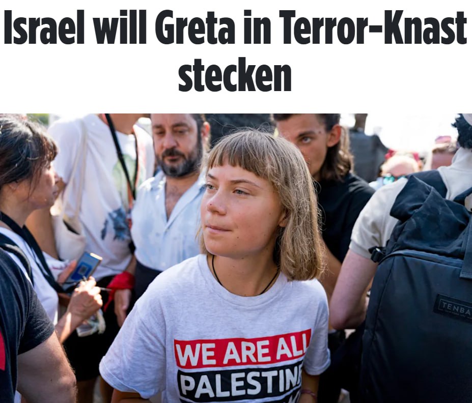 Грета снова плывет в Газу. Израиль хочет посадить экоактивистку Тунберг в тюрьму для террористов - Bild