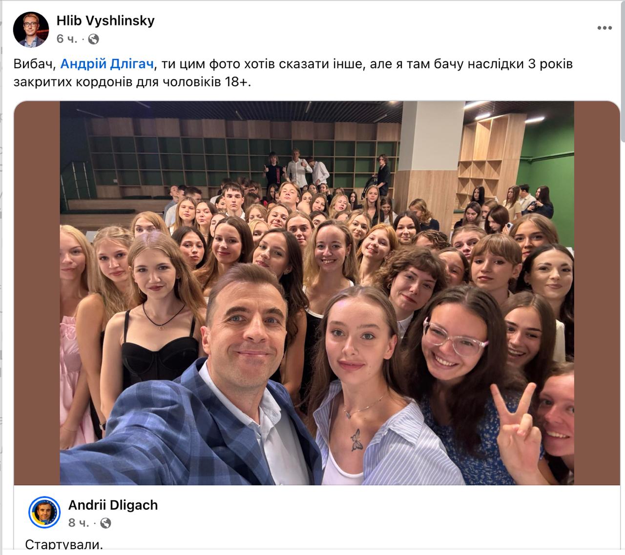 Кроме того, в комментариях публикуют фото группы Киево-Могилянской академии, где также видны лишь несколько парней.