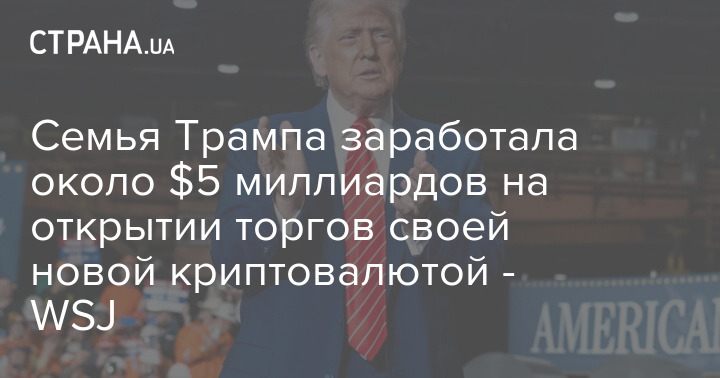 Вчера семья президента США Дональда Трампа заработала около пяти миллиардов долларов на открытии торгов своей новой цифровой валютой WLFI. Вероятно, это было крупнейшим финансовым успехом семьи президента с момента его инаугурации.