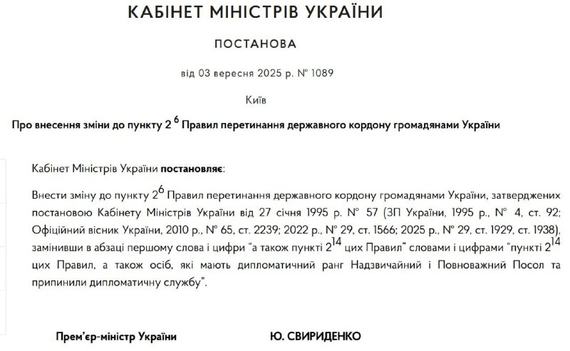 Согласно документу, в случае введения в Украине чрезвычайного или военного положения право пересекать государственную границу не распространяется на лиц, имеющих дипломатический ранг чрезвычайного и полномочного посла и прекративших дипломатическую службу. То есть бывшие послы теперь подпадают под общие ограничения на выезд за границу, которые действуют для большинства граждан Украины в условиях военного положения. Тогда как раньше лица с дипломатическим рангом имели привилегии в плане выезда за рубеж.