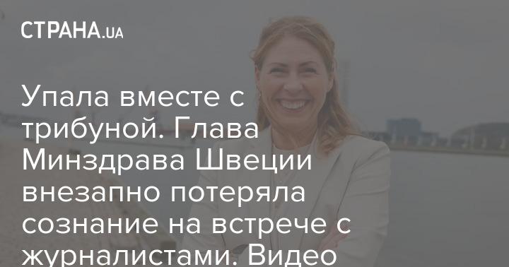 Упала вместе с трибуной. Глава Минздрава Швеции внезапно потеряла сознание на встрече с журналистами. Видео