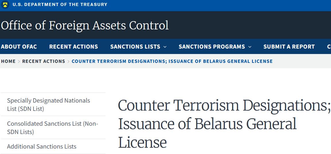 Министерство финансов США выпустило генеральную лицензию, которая позволяет проводить финансовые операции с белорусской авиакомпанией "Белавиа" и её "дочками".