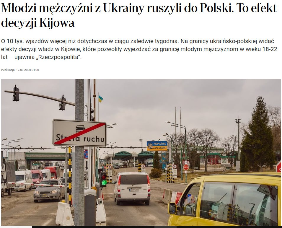 По информации издания, в первую же неделю действия новых правил был зафиксирован беспрецедентный рост числа украинцев этой возрастной группы, въезжающих в Польшу.