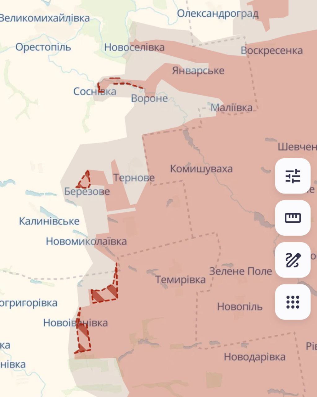 Ранее мы писали, что российские войска продвинулись на запад в Днепропетровской и Запорожской областях. Движение зафиксировано в районе Новониколаевки и Новоивановки (по ряду данных, она уже захвачена).