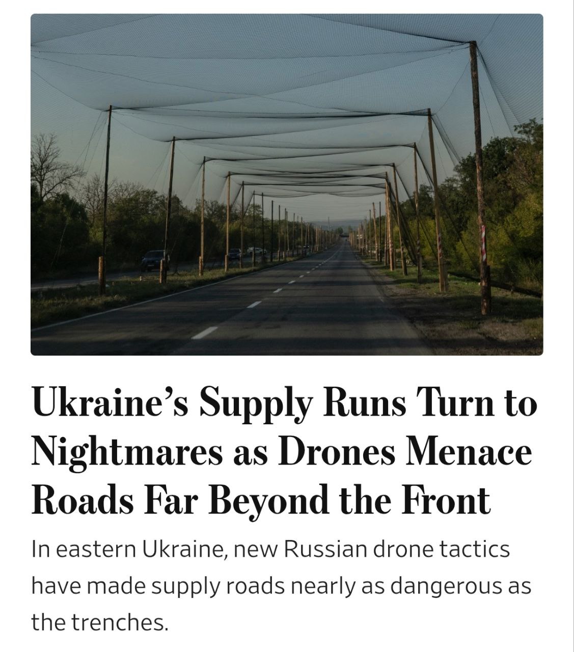 Растущая дальность российских дронов осложняет снабжение украинских военных. Дороги снабжения стали почти столь же опасны, как и окопы.