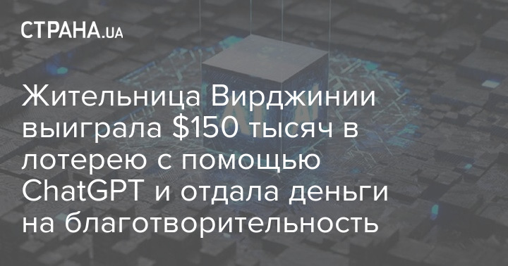 Жительница Вирджинии выиграла $150 тысяч в лотерею с помощью ChatGPT и отдала деньги на благотворительность