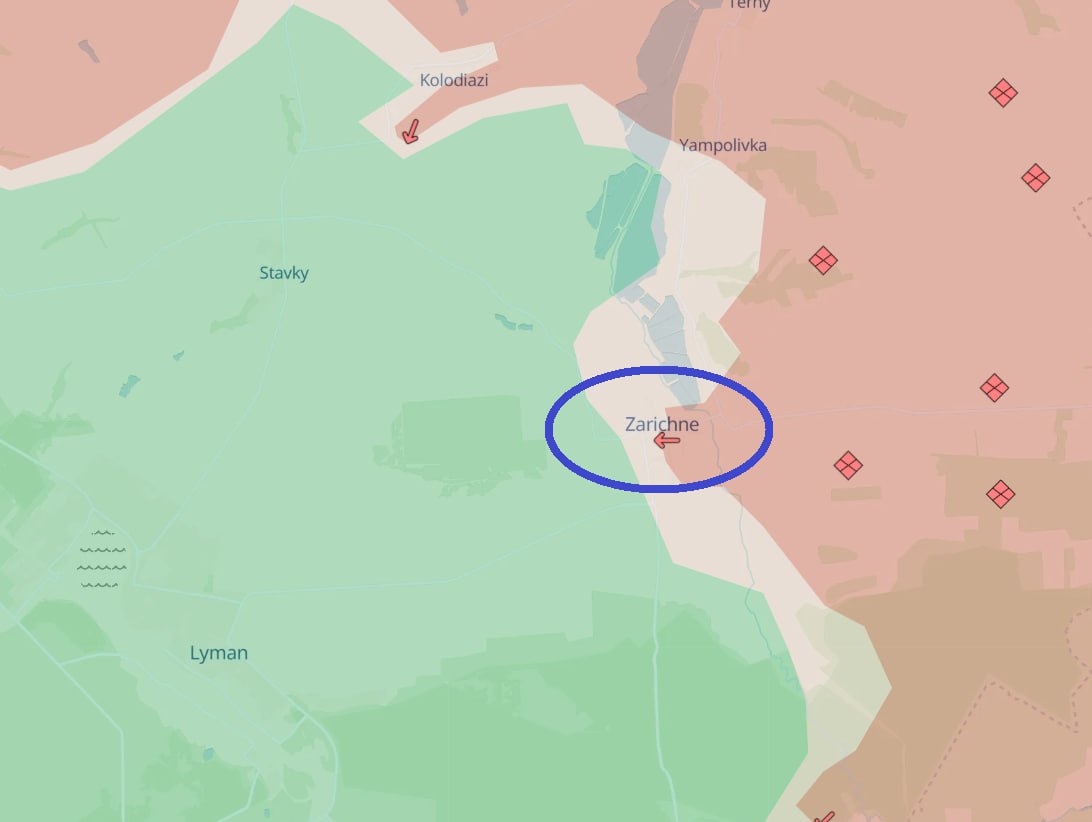 На карте Deep State населенный пункт Заречное находится под российским контролем частично. Украина в свою очередь потерю населенного пункта не подтверждала.
