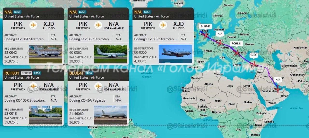 Также, по их информации, американские самолеты-дозаправщики, ранее летавшие в Европу, перенаправлены на Ближний Восток. Часть самолётов уже прибыла на базу в Катаре, другие ожидают вылета с британских баз. Подобная концентрация сил наблюдалась перед прошлой атакой на Иран.