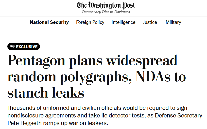 Пентагон готовит масштабные меры контроля за персоналом штаб-квартиры, включая обязательные соглашения о неразглашении тайны и выборочные проверки на полиграфе.