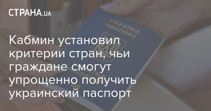 Правительство Украины одобрило постановление о критериях стран, граждане которых смогут упрощенно получать украинское гражданство.