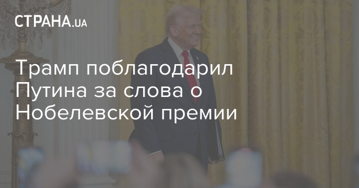 Президент США Дональд Трамп поблагодарил российского главу Владимира Путина за слова о Нобелевской премии.