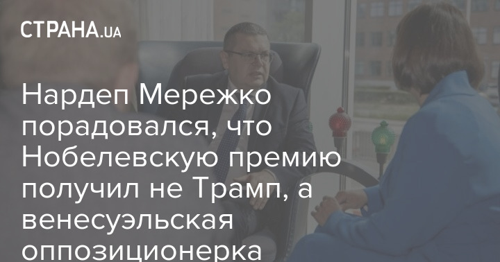 На фоне возмущения Белого дома тем, что президент США Дональд Трамп не получил Нобелевскую премию мира, глава Комитета Верховной Рады по международным делам и народный депутат от "Слуги народа" Александр Мережко поделился своей радостью, что премию получила венесуэльская оппозиционерка Мария Корине Мачадо.
