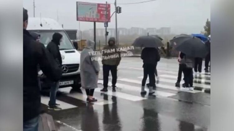 Жители Софиевской Борщаговки в Киеве перекрыли дорогу в знак протеста против отключения электроэнергии.
