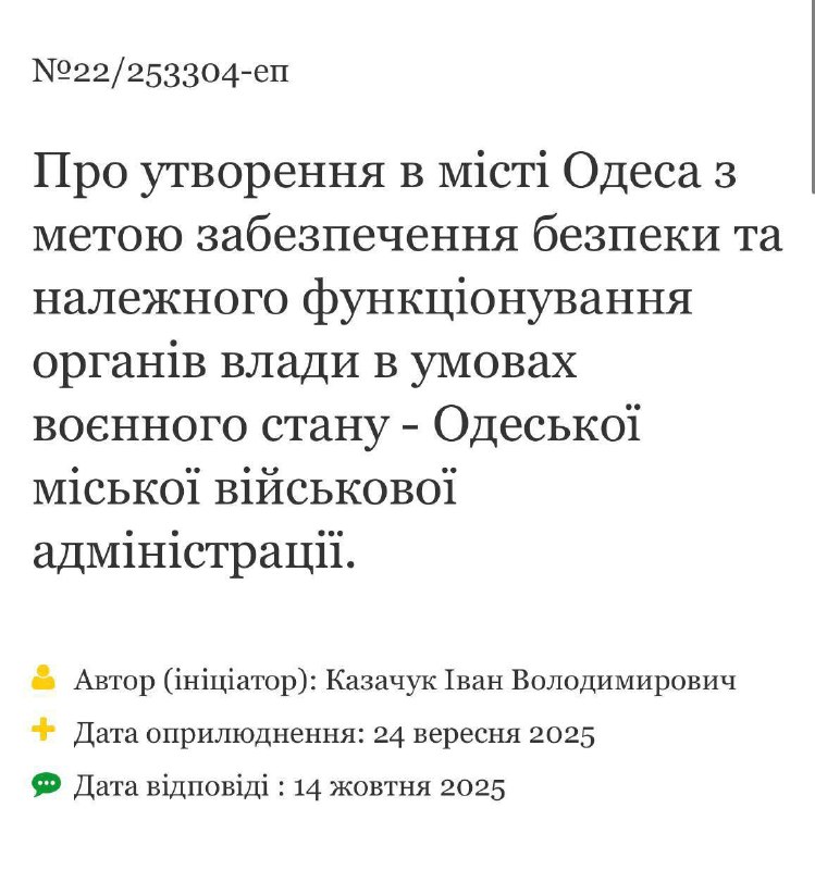 Владимир Зеленский призвал председателя Одесской областной государственной администрации Олега Кипера и главнокомандующего ВСУ Александра Сырского оценить необходимость создания военной администрации Одессы, которая будет управлять городом вместо мэра Геннадия Труханова.
