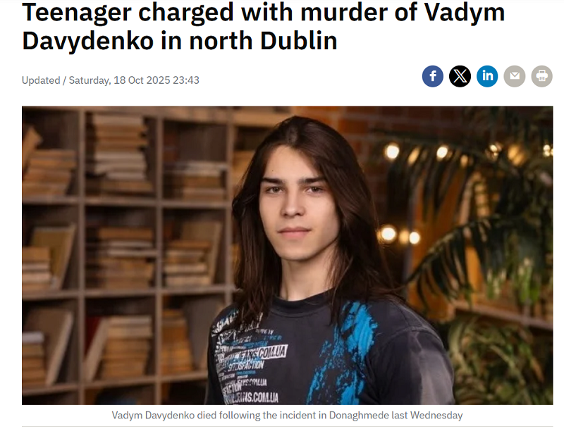 В Дублине 17-летнего украинского подростка Вадима Давыденко убил его ровесник из Сомали.