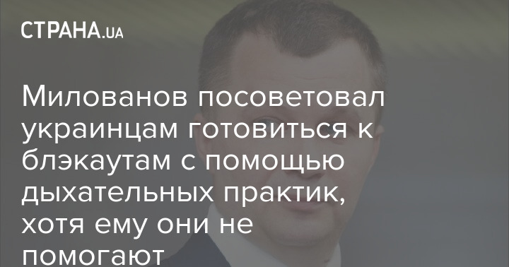 Бывший министр экономики, а ныне советник Офиса президента Тимофей Милованов спрогнозировал масштабные отключения света в текущем году и порекомендовал украинцам готовиться к ним, занимаясь дыхательными практиками.