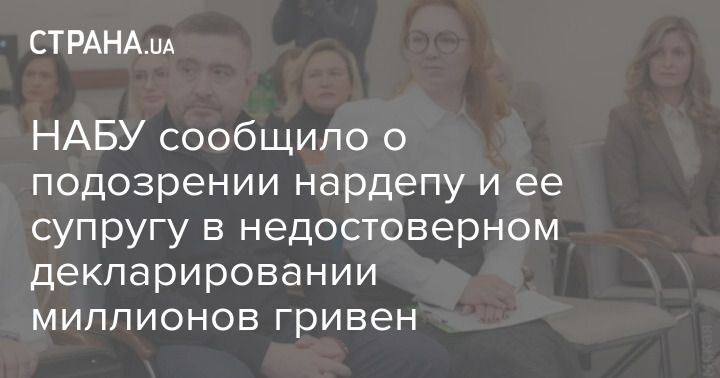 Национальное антикоррупционное бюро Украины (НАБУ) сообщило о подозрении народному депутату и ее супругу, главе областного совета, в недостоверном декларировании на 8 млн грн.