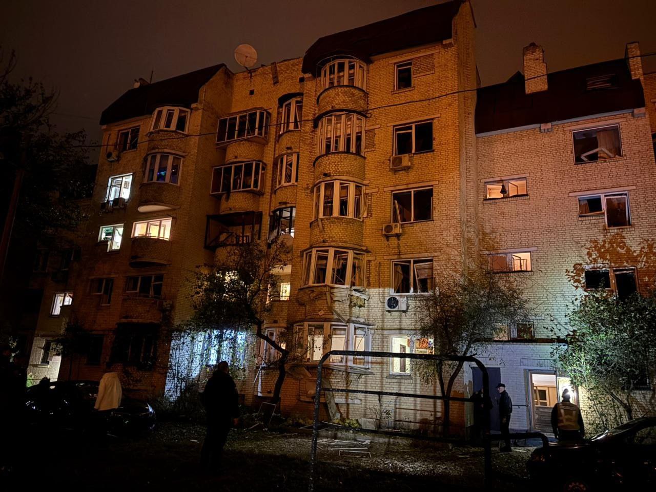 Кроме того, зафиксированы повреждения на территории детского сада: обломки дронов повредили фасад здания и выбили окна. Возгорания также произошли в складских помещениях, а один из бизнес-центров пострадал из-за падения обломков. Кличко уточнил, что обломки сбитого дрона упали возле синагоги.