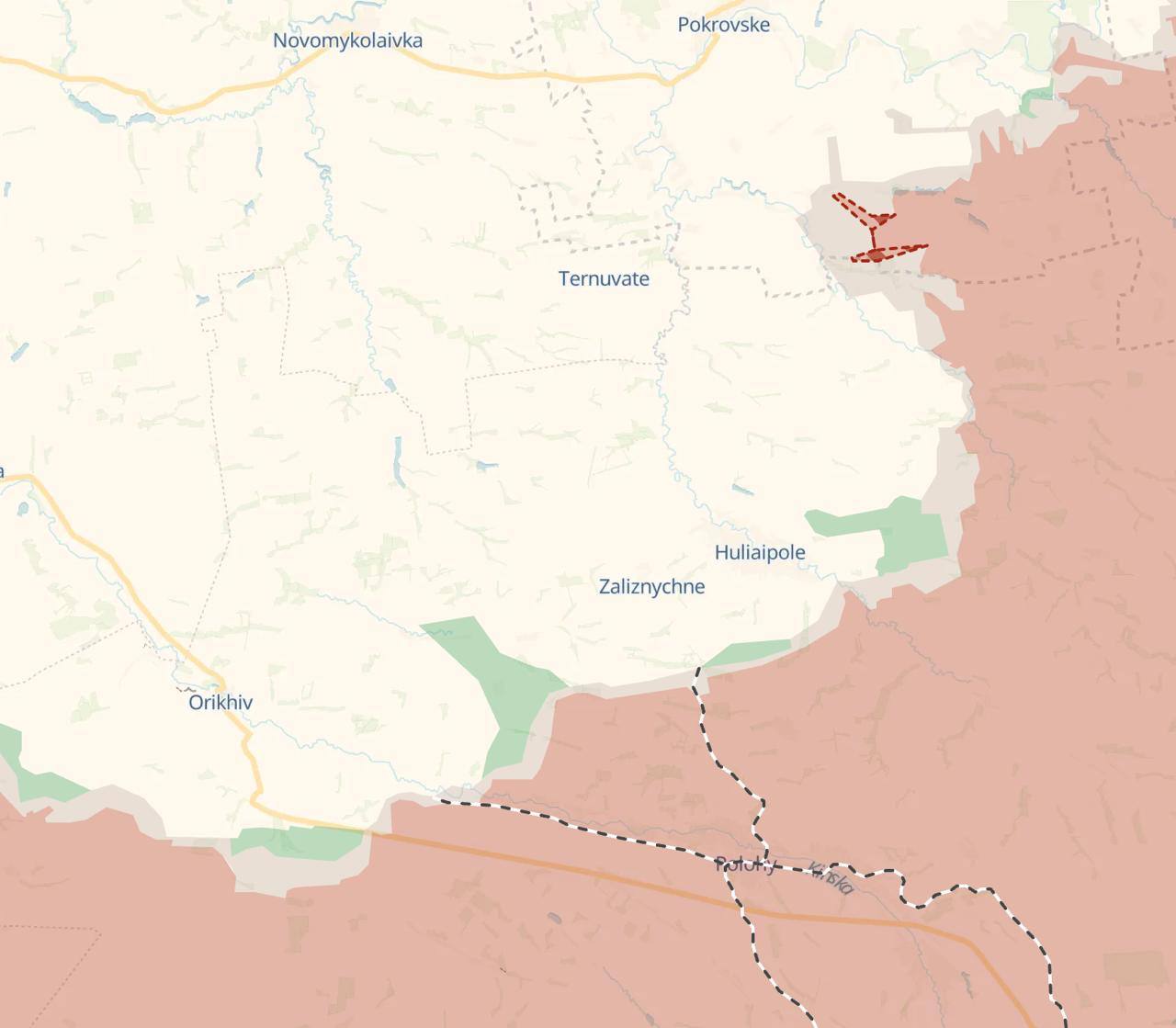 Российские военные телеграм-каналы полагают, что цель этого наступления - выход в северный тыл Гуляйполя, а в перспективе - укрепрайона ВСУ в Орехове.