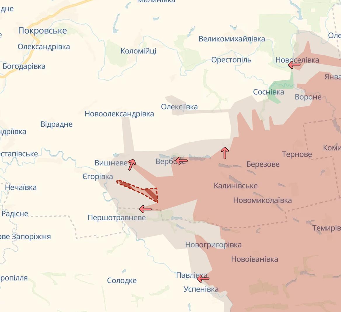 Также россияне продвинулись в Днепропетровской области в направлении Егоровки, сообщает Deep State.