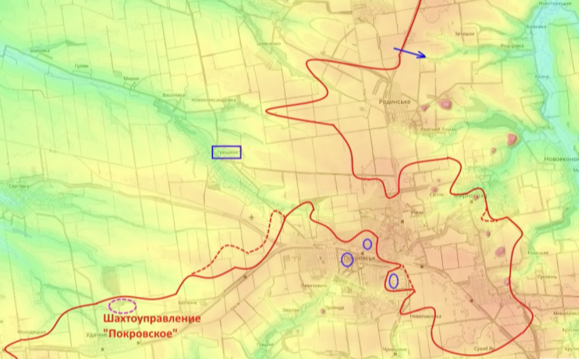 Россияне также продвинулись к югу и северо-востоку от Покровска, обходя Мирноград. Расстояние между серой зоной вокруг агломерации теперь менее 3 км.
