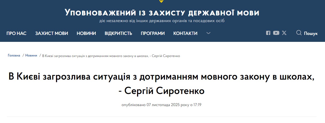 "Молодое поколение использует русский язык даже чаще, чем их родители. Это признак серьезного влияния страны-агрессора. Через интернет, социальные сети Россия влияет на наших детей, на формирование языковых привычек", - сказал Сергей Сиротенко.