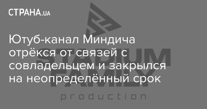 Ютуб-канал Миндича отрёкся от связей с совладельцем и закрылся на неопределённый срок