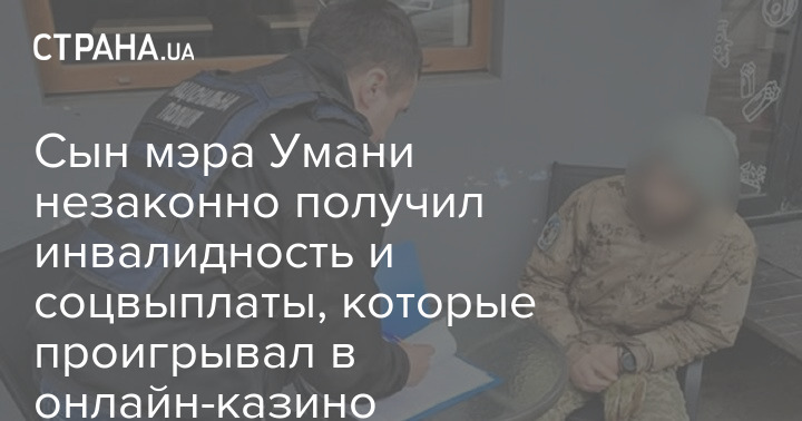 Сын мэра одного из городов Черкасской области незаконно оформил инвалидность и социальные выплаты и проиграл деньги в онлайн-казино.