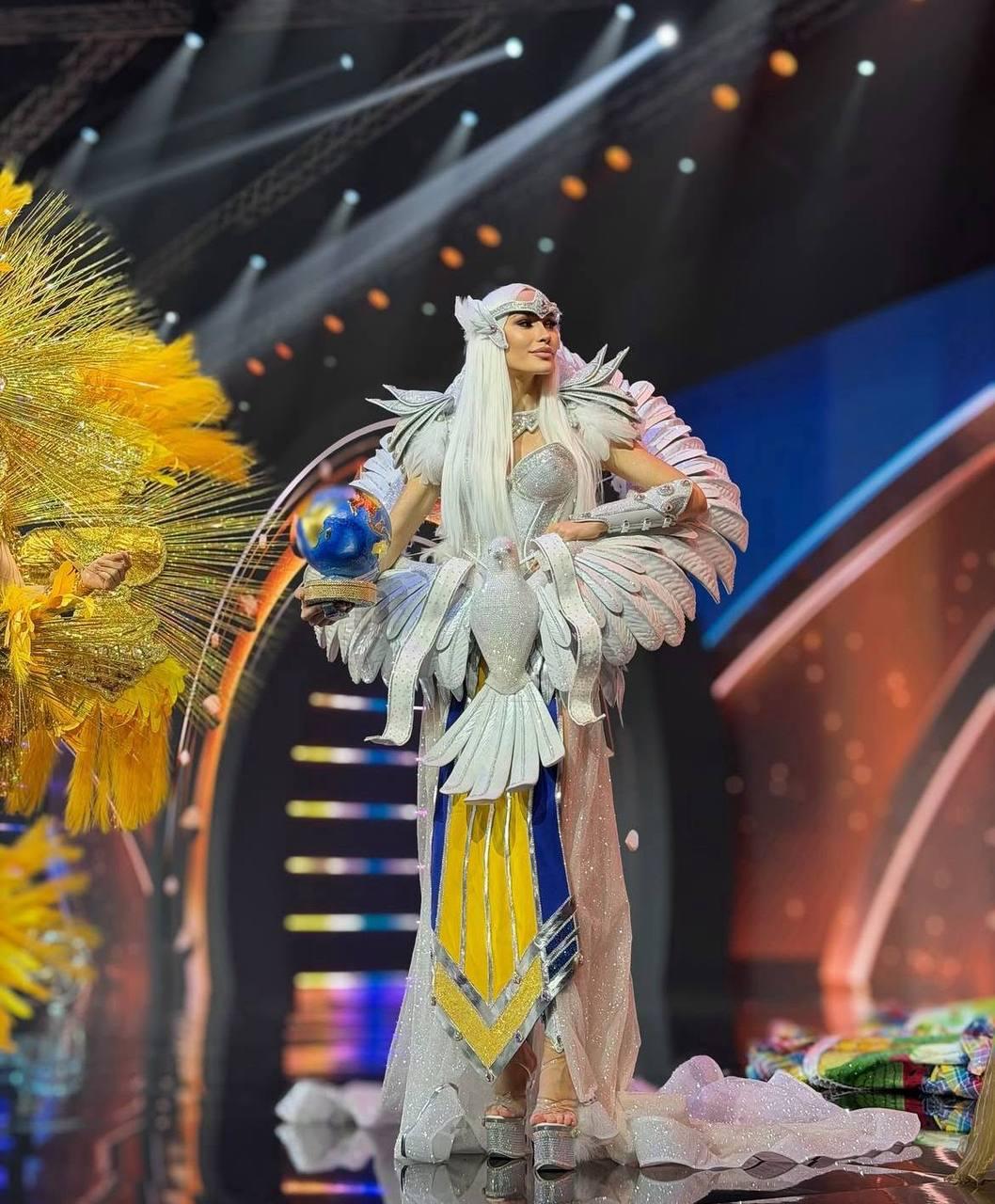 Ткачук представила впечатляющий костюм, который символизирует стремление Украины к миру. Его создатели заложили в него силу и сдержанную женственность.