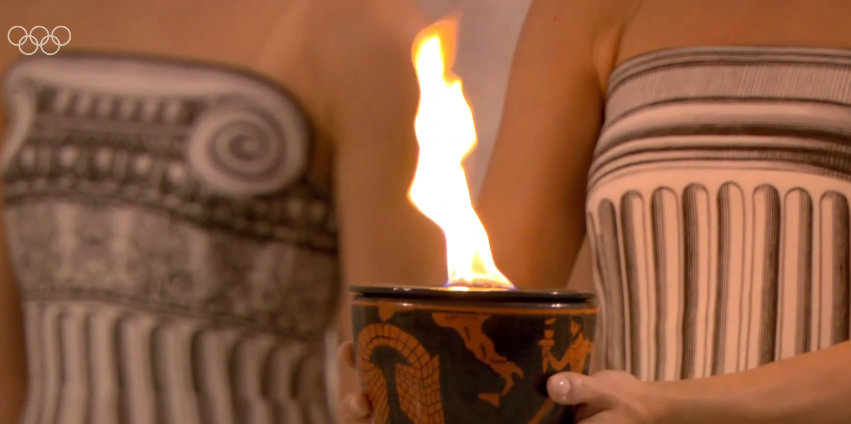 Из-за непогоды церемонию перенесли с античного стадиона Древней Олимпии в Археологический музей, и для зажжения факела был использован резервный огонь, вспыхнувший 24 ноября от солнечных лучей в ходе генеральной репетиции церемонии, состоявшейся на археологической площадке Древней Олимпии у античного храма Геры.