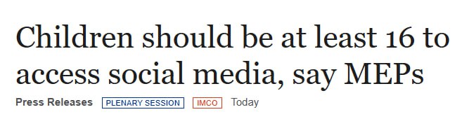 Депутаты Европарламента 483 голосами "за", 92 "против" и 86 воздержавшихся приняли доклад, в котором выражается глубокая обеспокоенность по поводу рисков для физического и психического здоровья несовершеннолетних, с которыми они сталкиваются в Интернете, и содержится призыв к усилению защиты от манипулятивных стратегий, которые могут усилить зависимость и негативно сказаться на способности детей концентрироваться и эффективно взаимодействовать с онлайн-контентом.