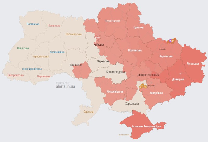22:56 Тревога в Киеве и ряде областей.