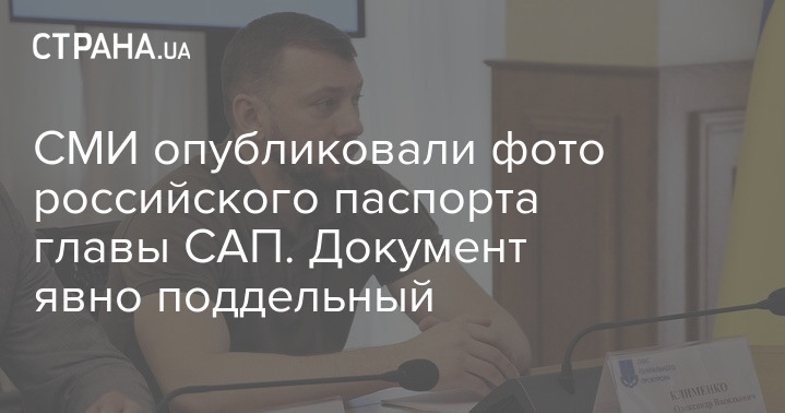 Об этом сообщают российские СМИ, публикуя, как они утверждают, фото поддельного паспорта РФ на имя Александра Васильевича Клименко, родившегося 17 сентября 1986 года. Это данные главы Специализированной антикоррупционной прокуратуры Украины. Также в паспорте вклеено его фото.