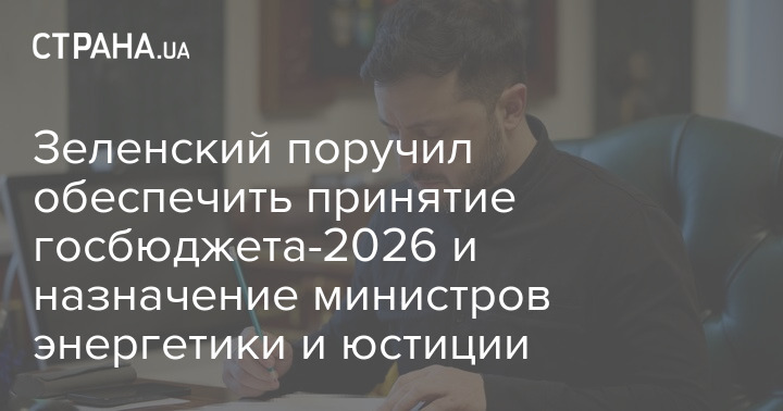Президент Украины Владимир Зеленский поручил Верховной Раде и Кабинету министров обеспечить принятие государственного бюджета на следующий год и назначение министров энергетики и юстиции.