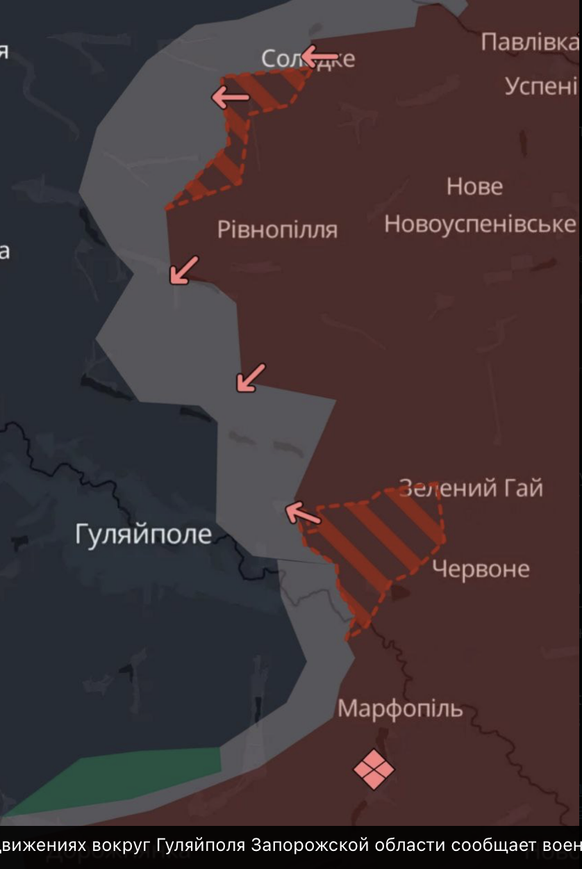 08:19 О новых продвижениях вокруг Гуляйполя Запорожской области сообщает военный паблик Deep State.