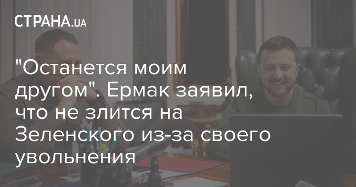 Недавно покинувший пост главы Офиса президента (ОП) Андрей Ермак заявил, что не питает злобы к президенту Украины Владимиру Зеленскому из-за своего увольнения.