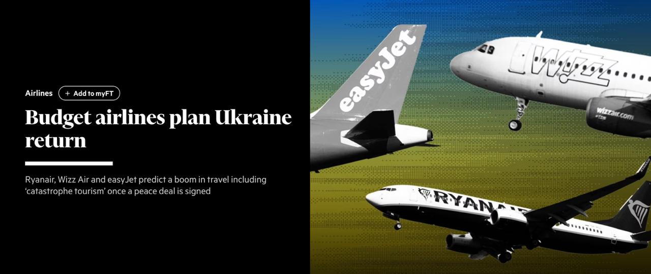 Крупный лоукостер EasyJet, ранее не работавший в Украине, тоже рассматривает выход на украинский рынок. Гендиректор Кентон Джарвис назвал Украину будущим "крупнейшим строительным проектом Европы" и отметил, что многие граждане захотят вернуться домой, когда это станет безопасным.