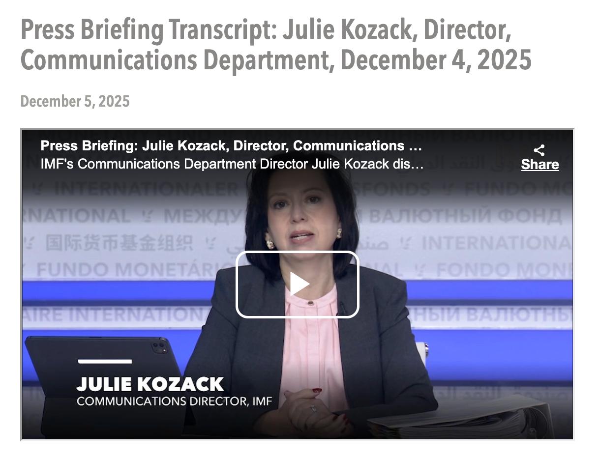Пресс-секретарь Международного валютного фонда Джули Козак заявила, что одной из первоочередных условий для предоставление Киеву дальнейших кредитов было принятие государственного бюджета на 2026 годы, и оно уже выполнено. Предварительная оценка МВФ показывает, что документ в целом соответствует обязательствам программы.