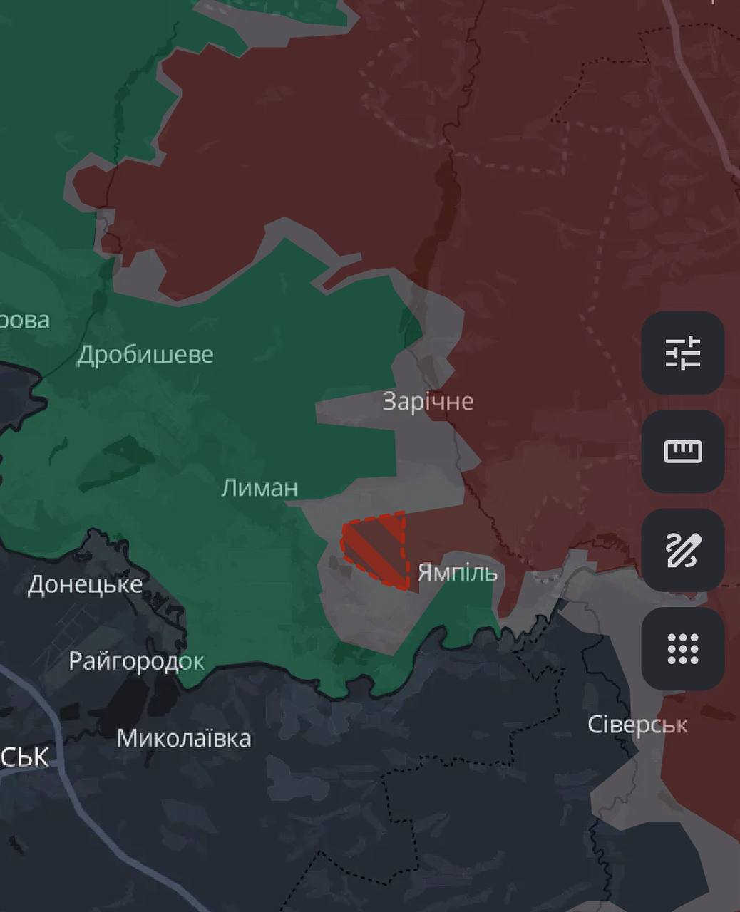 По данным паблика, российские войска продвинулись у Ямполя Донецкой области и у Сладкого Запорожской области, к северу от Гуляйполя.